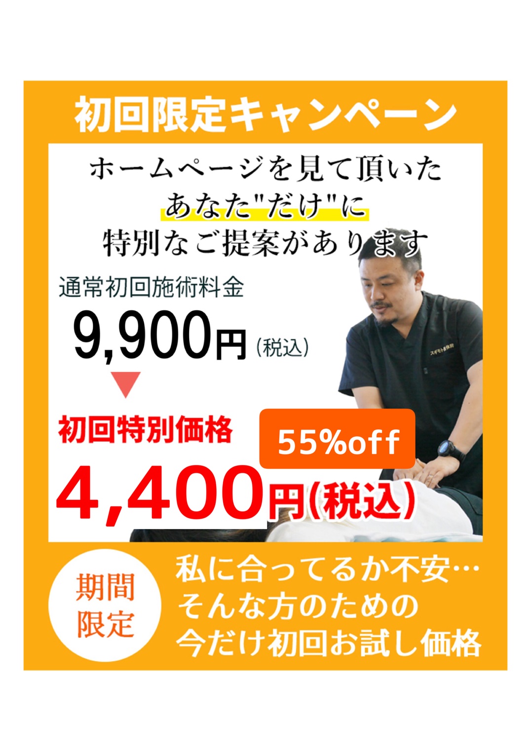 ■初回:約60分~90分程度(初回は施術前に痛みの原因を確認するために、問診や検査を十分に行います)